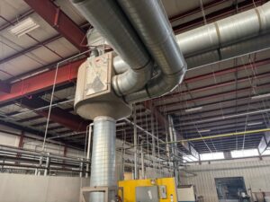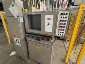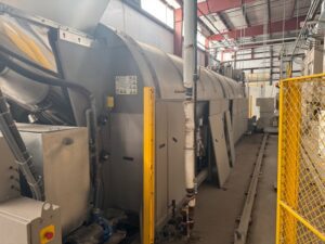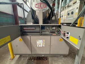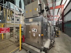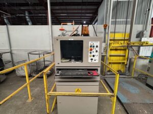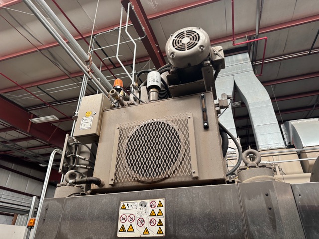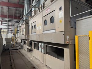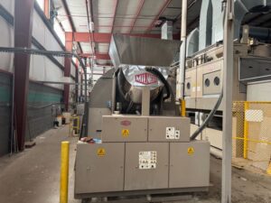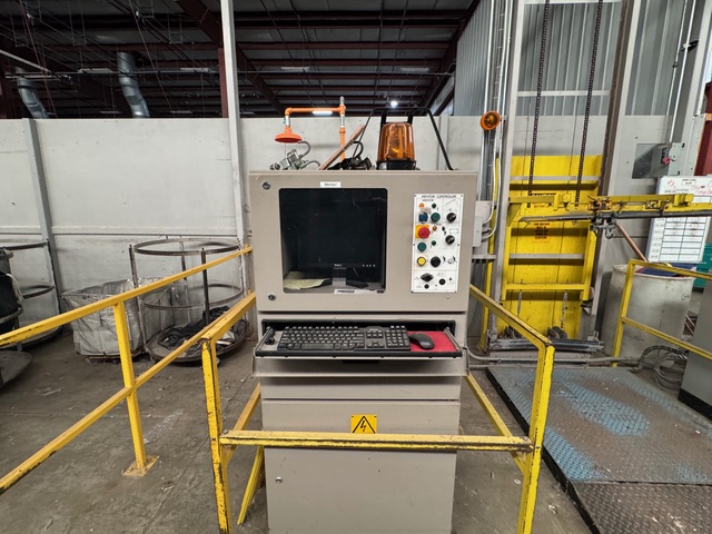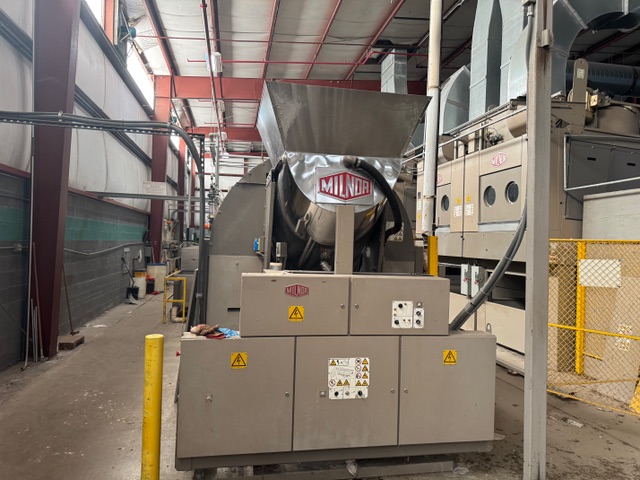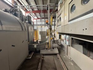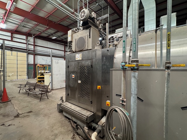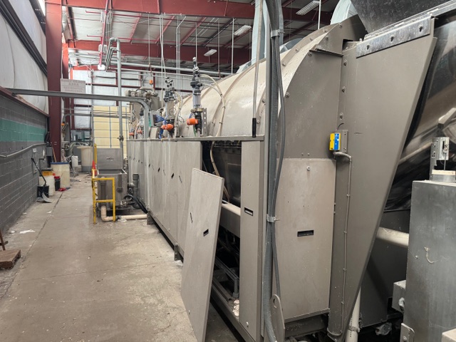 2002 Milnor 8mod, 135lb.CBW System with Single Stage Press, Shuttle and (4) Milnor 64058 Gas Heated Dryers