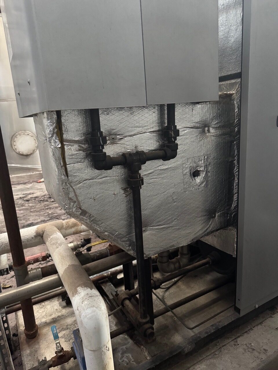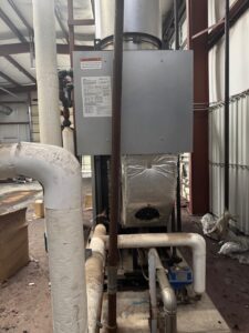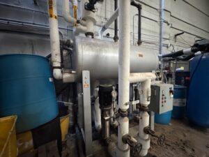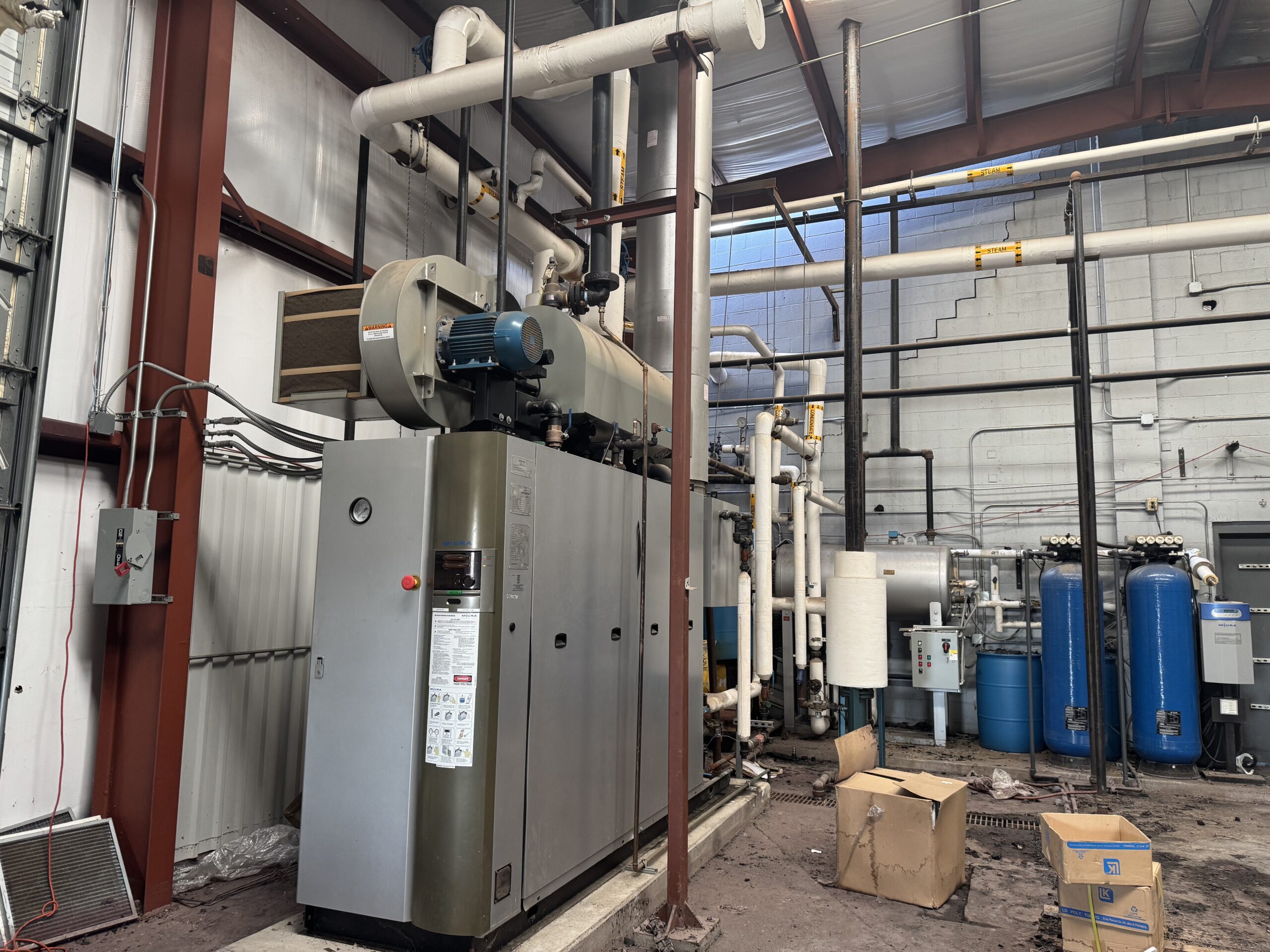 150hp Boiler with feedwater system, lowdown separator, and polishing softener.