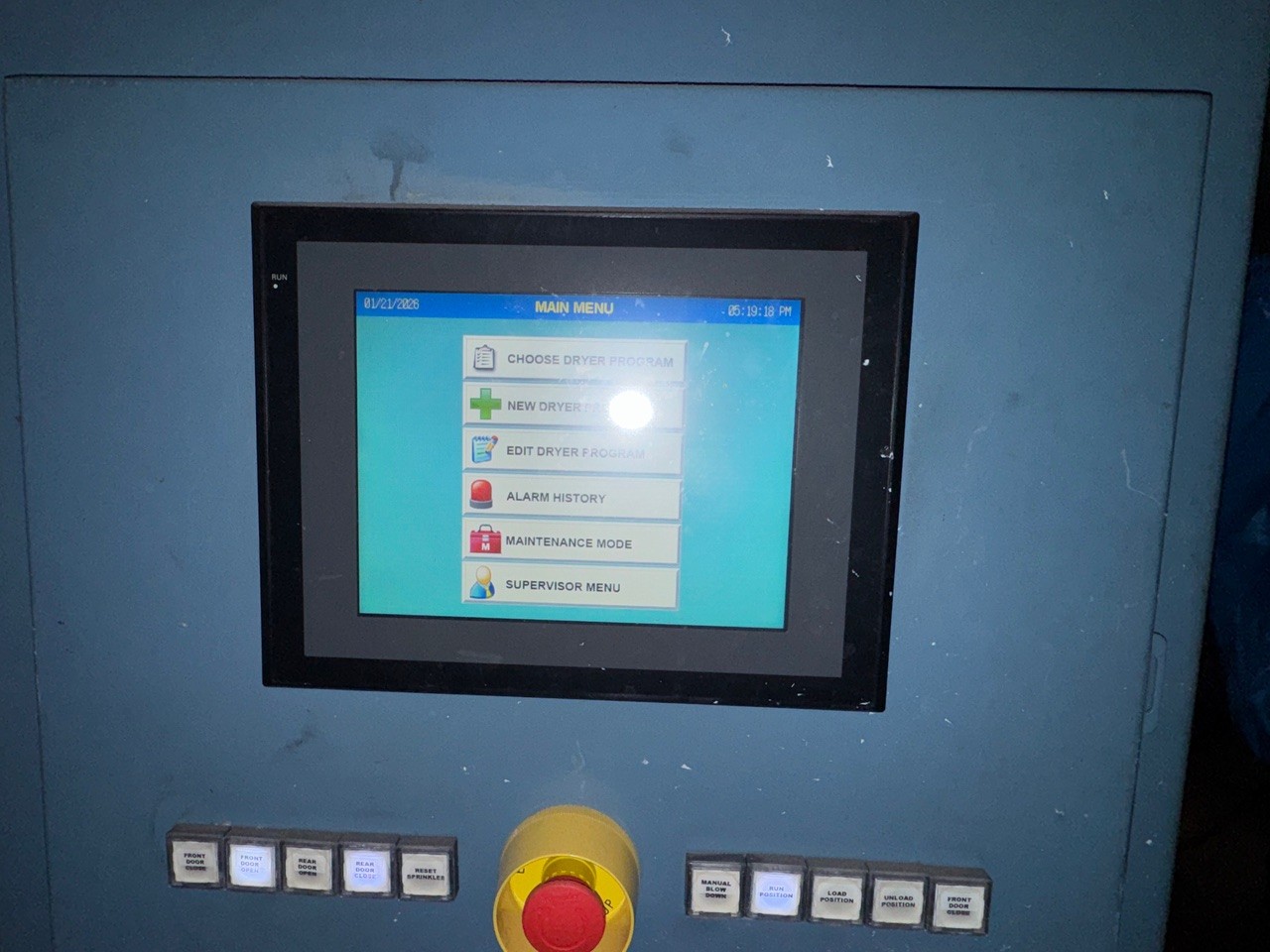 2014 Consolidated 250lb. Passthrough Gas Heated Dryer with Touchscreen Controls, Removable Panels, Stainless Steel Lint Trap