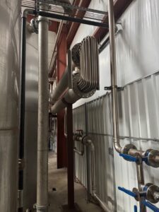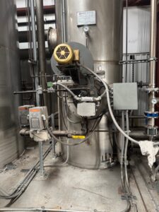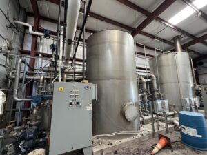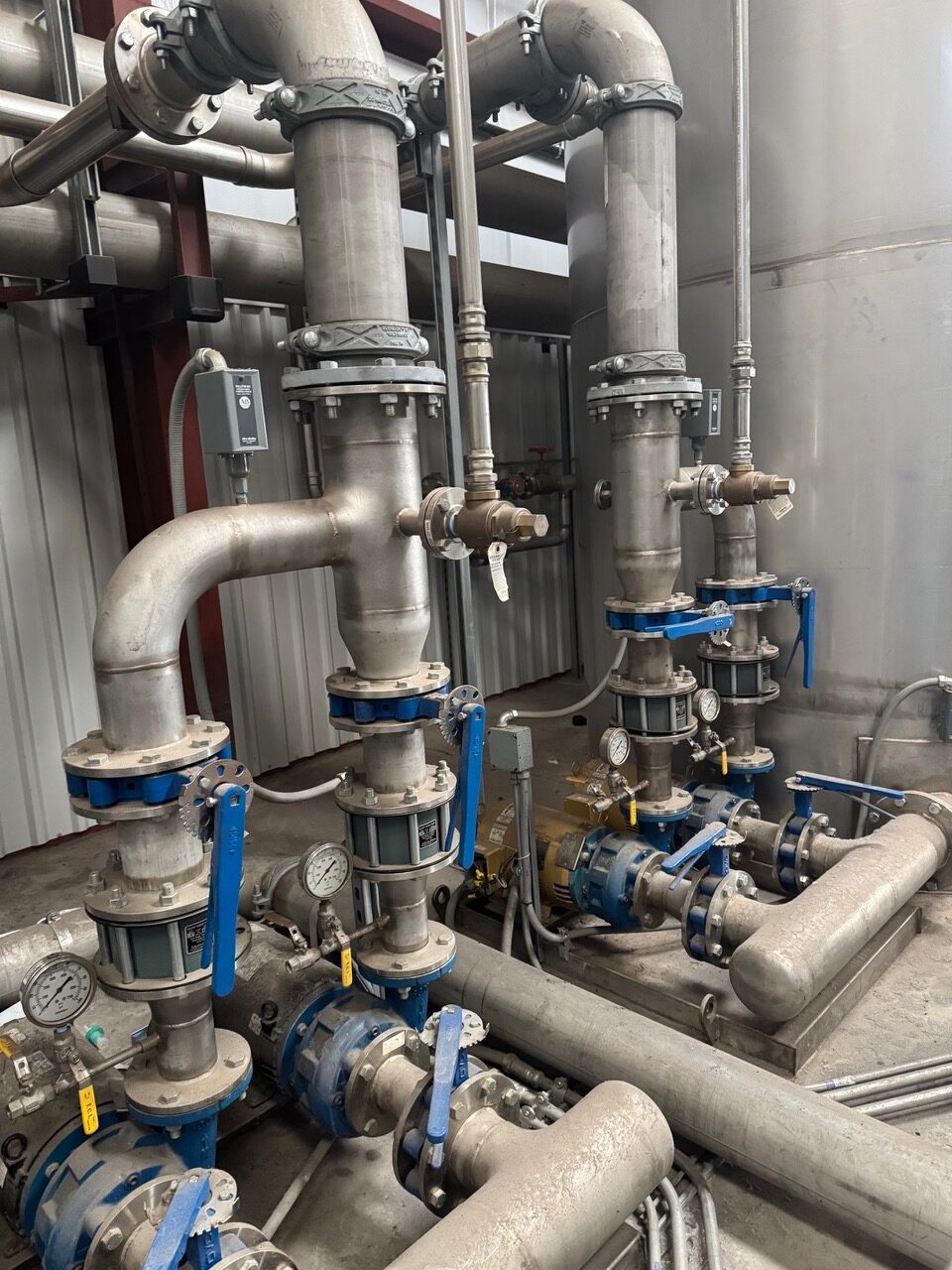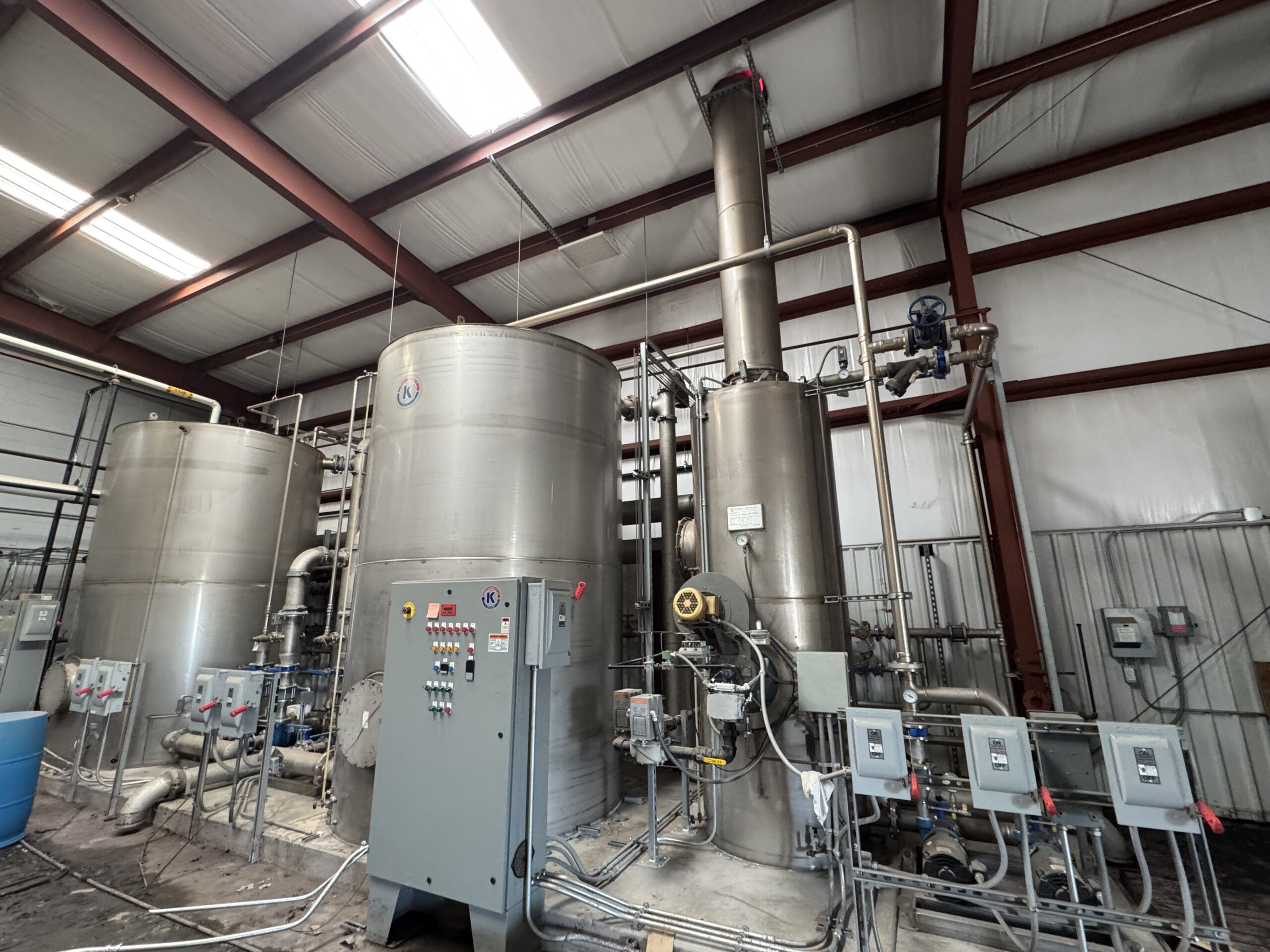 W/ 4.5mbtu direct fire water heater, (2) 3965 gallon stainless steel tanks, dual pump package, and two section, 10in dia. 30ft tube and shell heat reclaimer with all controls.