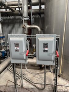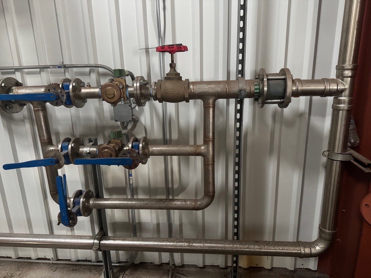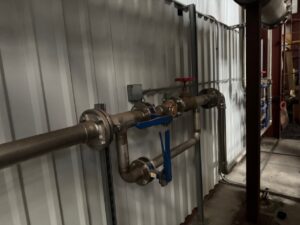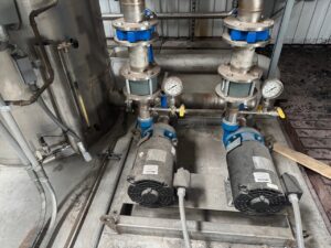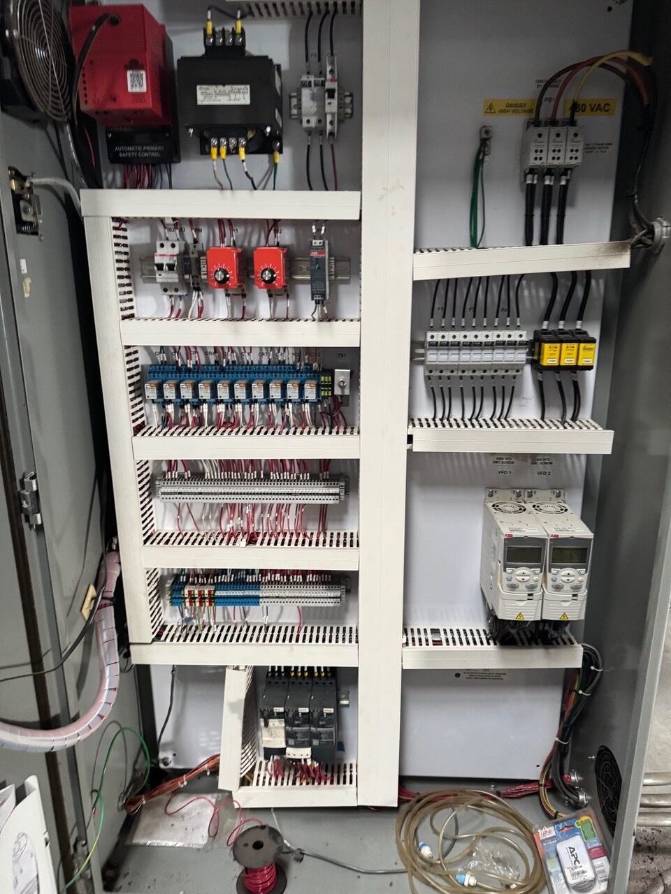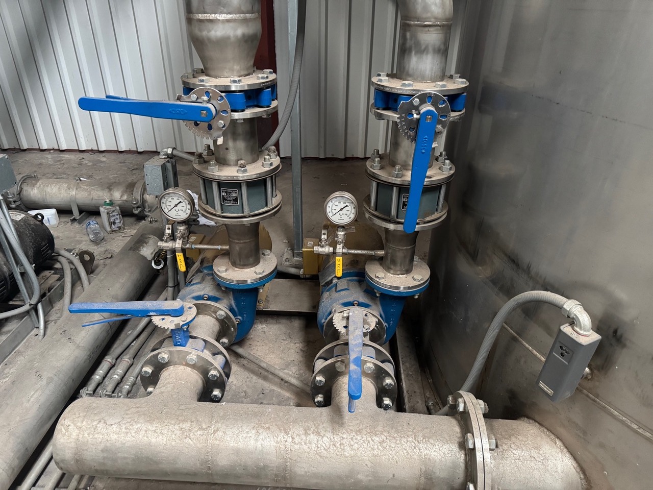 W/ 4.5mbtu direct fire water heater, (2) 3965 gallon stainless steel tanks, dual pump package, and two section, 10in dia. 30ft tube and shell heat reclaimer with all controls.